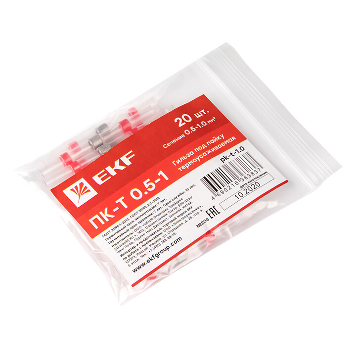 Гильза термоусаживаемая ПК-Т 0.5-1 под пайку (20шт.) EKF