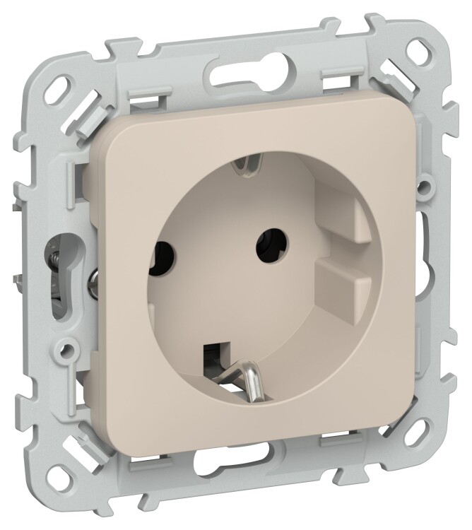 Розетка 2P+E безвинтовое крепление 16А РС11-1-ФлЛ льняной FLITE