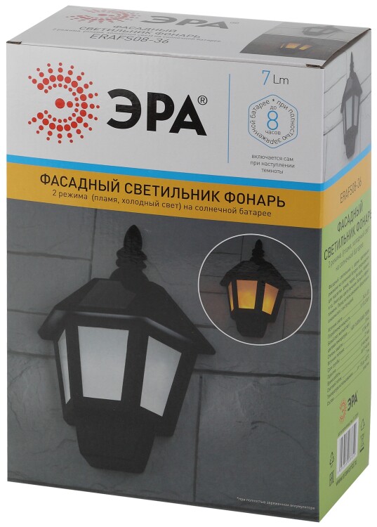 Фасадный светильник Фонарь,2 режима(огонь,холодный свет),на солн. бат.,40LED,7Лм ERAFS08-36