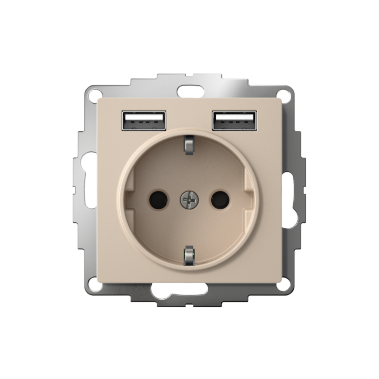 Розетка 2P+E с 2хUSB 5В/2,4А 2х5В/1,2А 16А песочный AtlasDesign