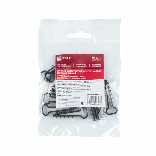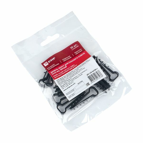 Дюбель-хомут (6х12 мм) для плоского кабеля черный (10 шт.) EKF PROxima