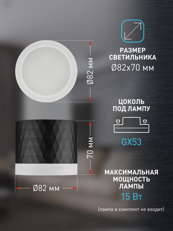 Светильник настенно-потолочный спот ЭРА OL37 BK под GX53 IP20 черный