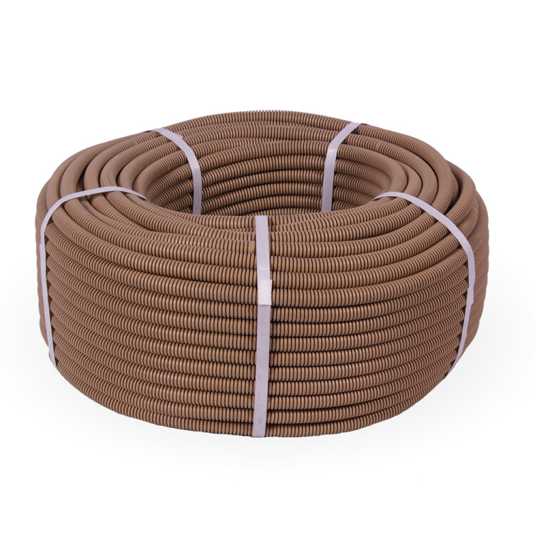 Труба ПВХ гибкая гофрированная д.16 мм, лёгкая, с протяжкой, цвет бук, (Бухта 100м)