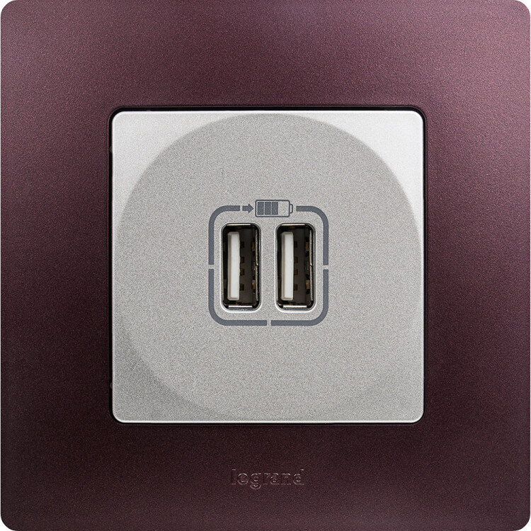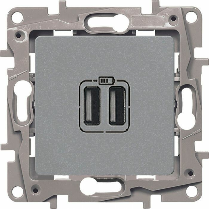 Розетка 2хUSB 240В/5В 2400мА алюминий Etika