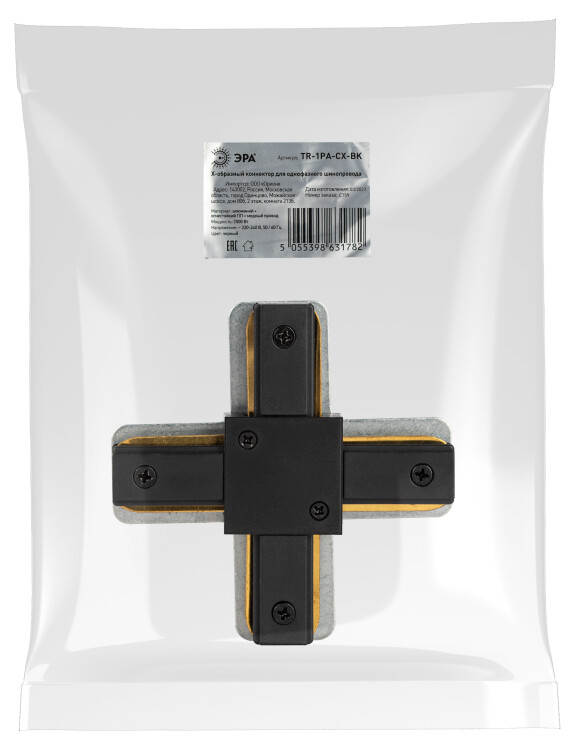 Коннектор ЭРА TR-1PA-СX-BK X-образный для однофазного шинопровода черный