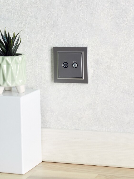 Розетка двойная TV+SAT РТВ/РСп12-БрС сталь BRITE