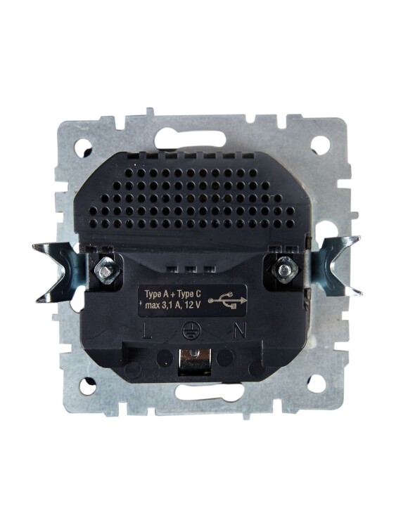 Розетка 2P+E с защитными шторками 16А с USB A+C 18Вт РЮш11-1-БрЖ жемчуг BRITE