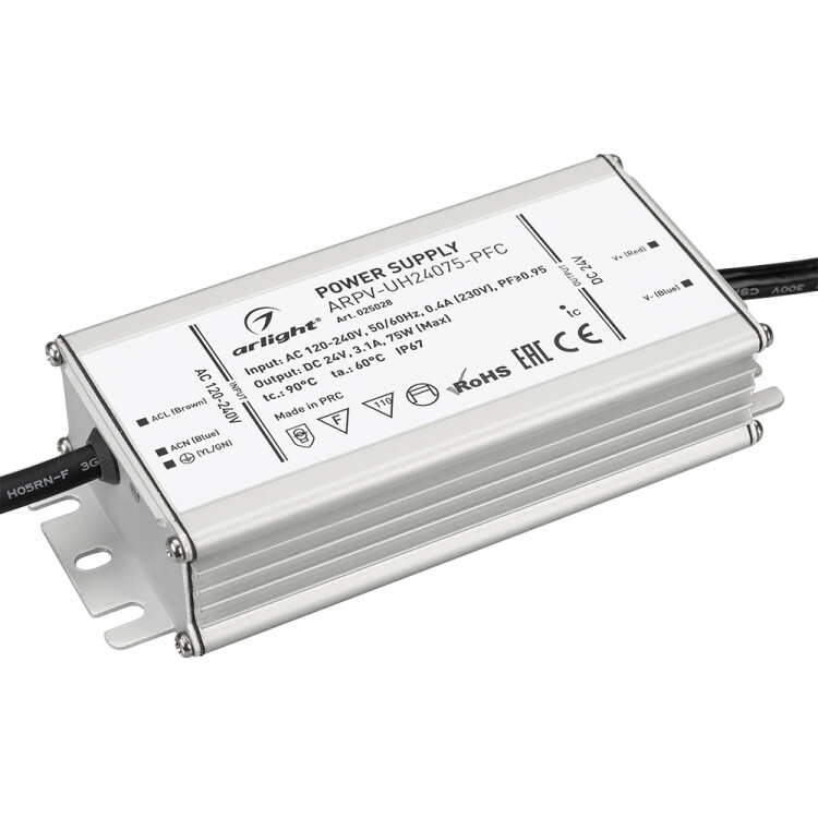 Блок питания ARPV-UH24075-PFC (24V, 3.1A, 75W) (Arlight, IP67 Металл, 7 лет)