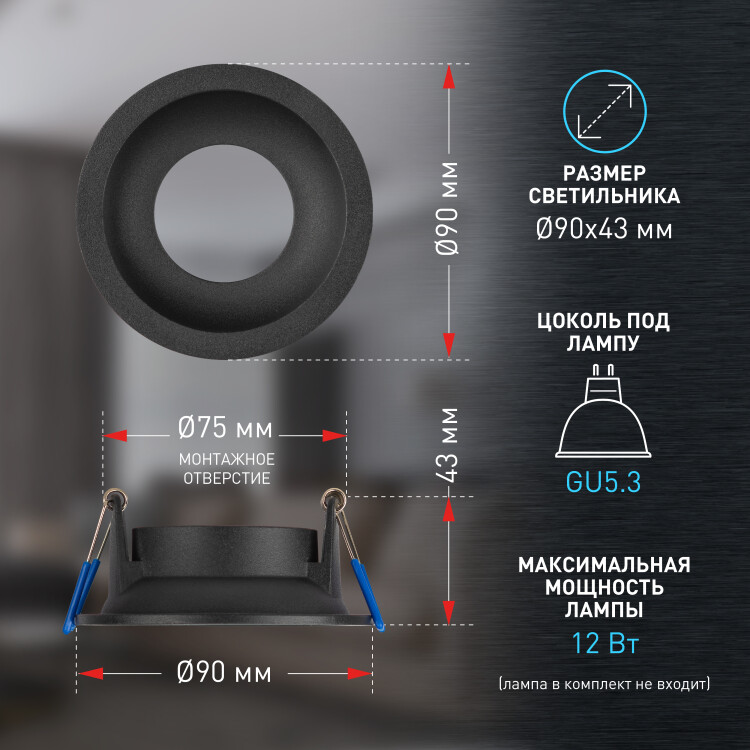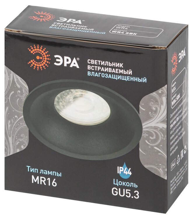 Встраиваемый светильник влагозащищенный ЭРА WR4 SBK MR16/GU5.3 IP44 черный матовый