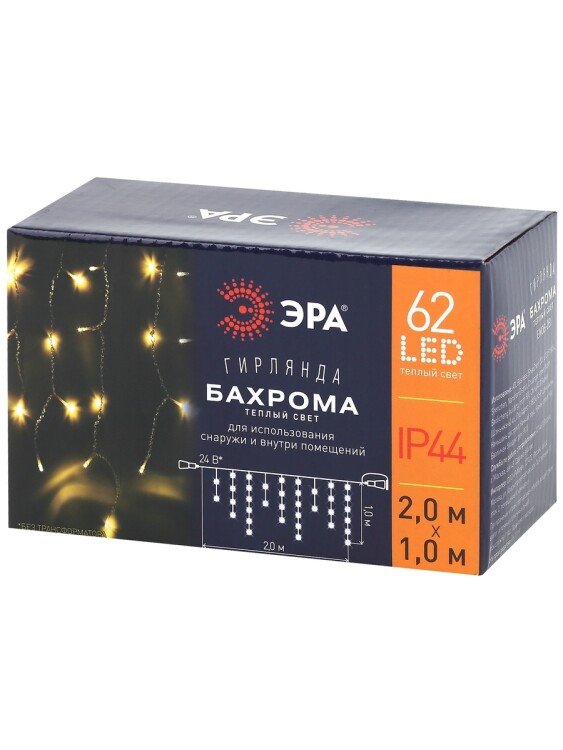 ENOB-2B ЭРА Гирлянда LED Бахрома 2м*1м теплый свет, 24V, IP44 (80/960)