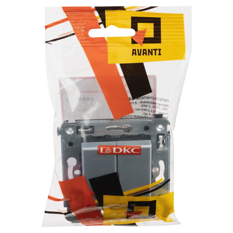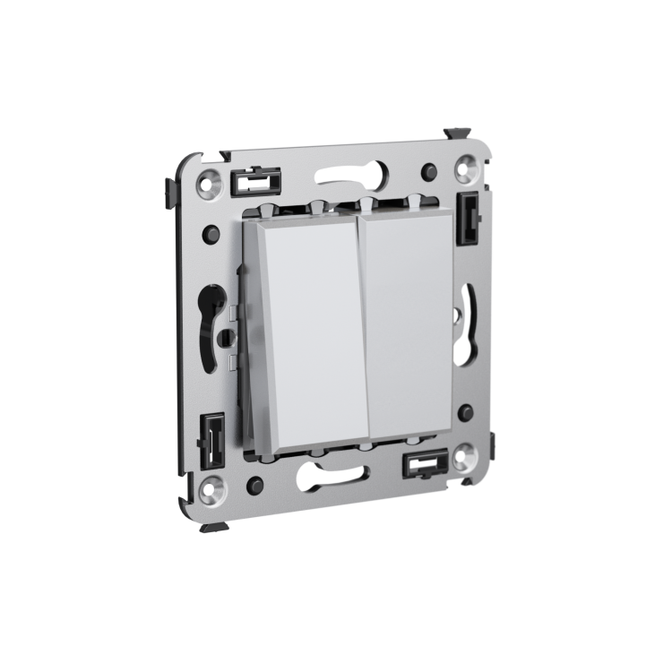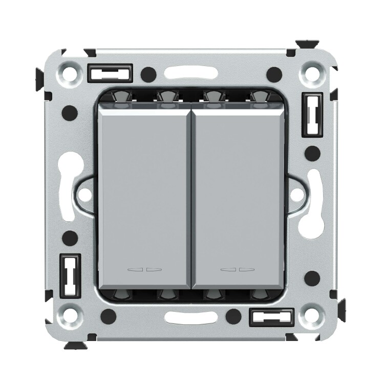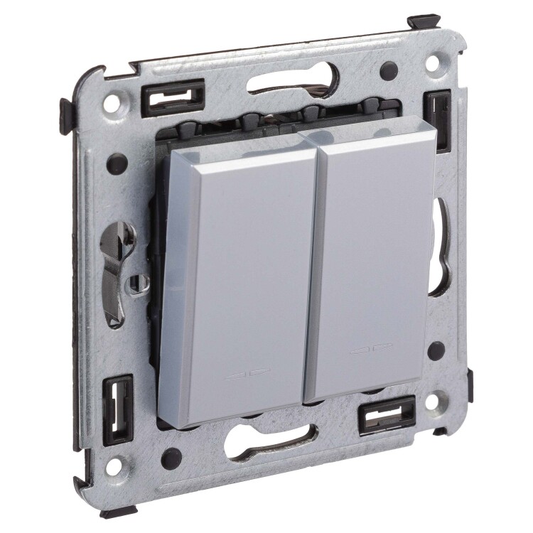 Переключатель двухклавишный в стену, "Avanti", "Закаленная сталь"