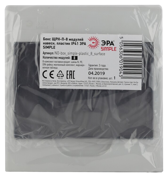 Корпус пластиковый навесной ЭРА SIMPLE ЩРН-П-08 IP41 прозрачная крышка белый