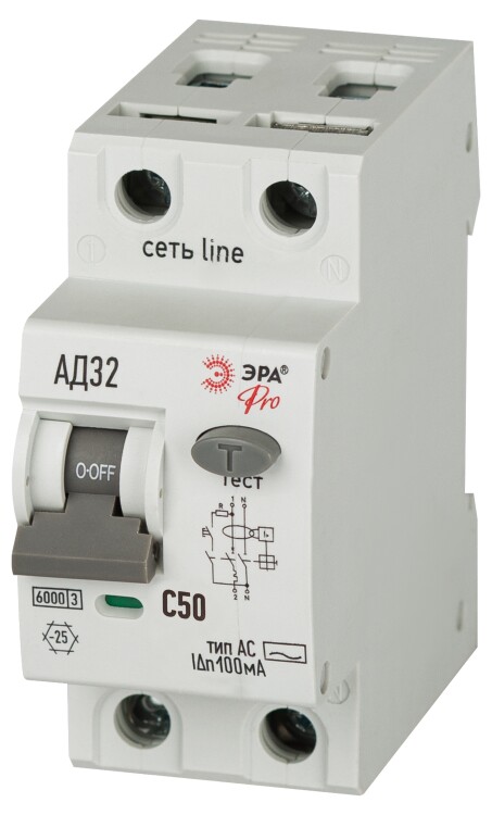 АВДТ 6кА ЭРА PRO D326M2C50АC100 АД-32 электромеханическое 1P+N C50 100мА тип АC