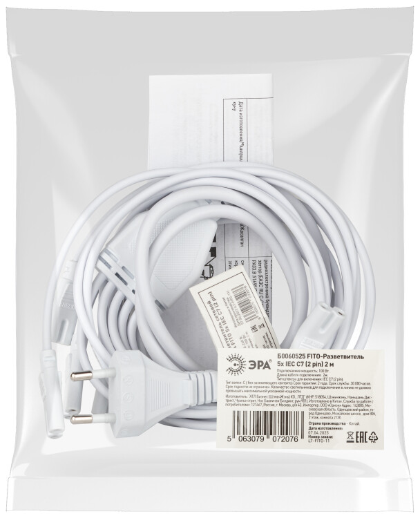 Разветвитель сетевой для линейных светильников ЭРА Разветвитель 5х IEC C7 2 м для подключения 5 светильников