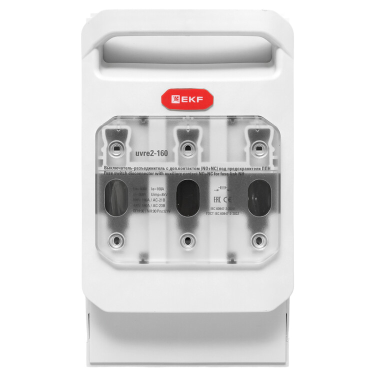 Выключатель-разъединитель УВРЭ v2 160А с дополнительным контактом (NO+NC) откидного типа под предохранители ППН (габ.00) EKF