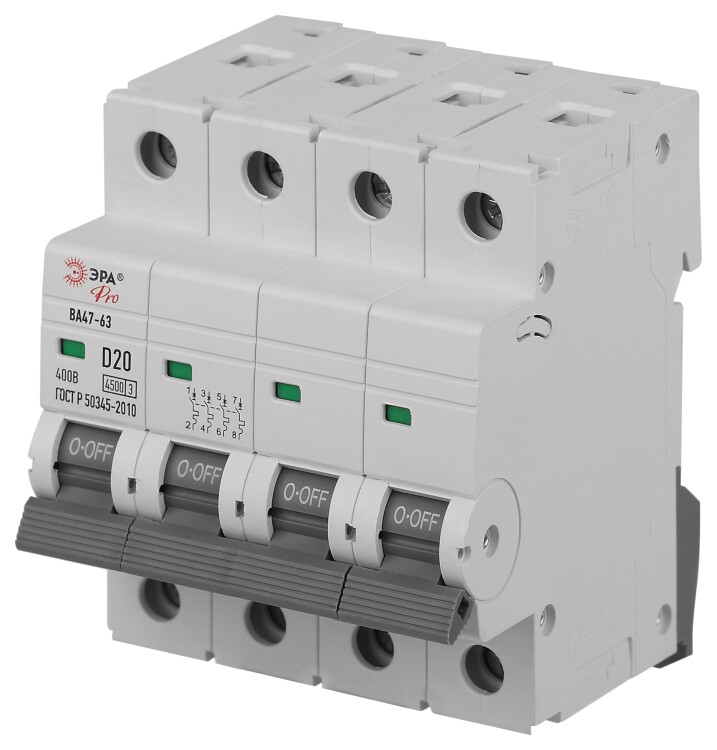 Автоматический выключатель ЭРА PRO VA63-4P20D4.5 ВА47-63 4P 20А кривая D 4,5кА