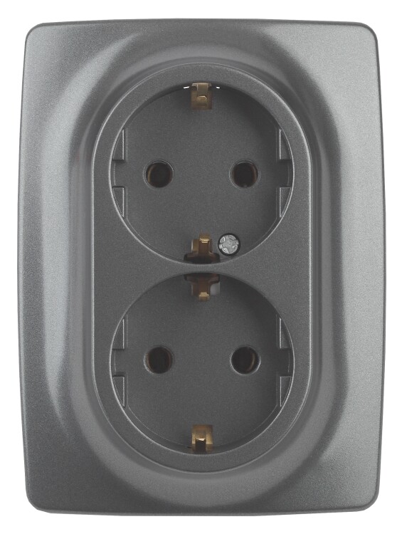 12-2108-12 ЭРА Розетка 2X2P+E Schuko со шторками, 16A-250В, IP20, Эра12, графит (10/100/2000)