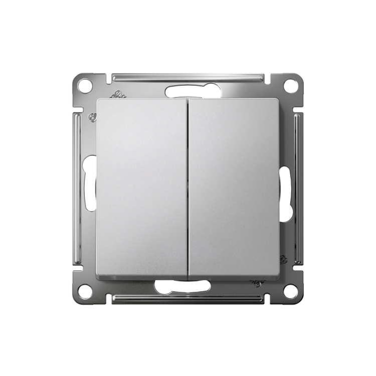 Переключатель 2 клавишный перекрестный 10А алюминий AtlasDesign
