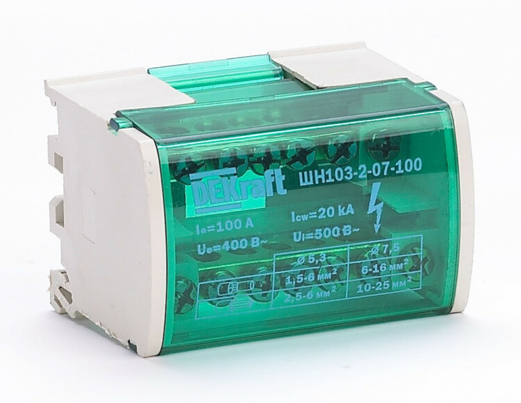 Кросс-модуль на DIN-рейку, 2 полюса, 100 А, 5х1,5-6 мм?, 2х6-16 мм?, 100А ШН-103