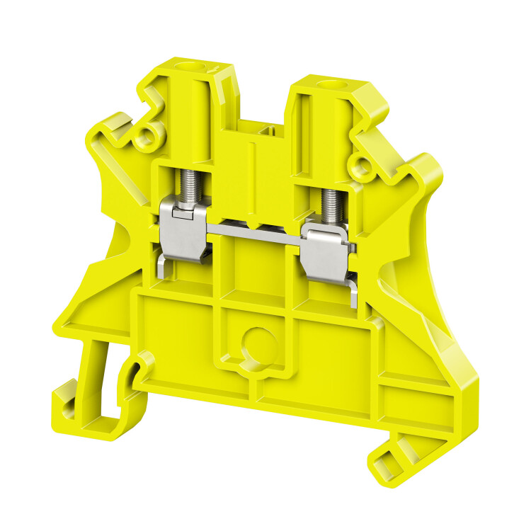 Клемма проходная, винтовой зажим, 2 точки подключения, 4 кв.мм, желтая