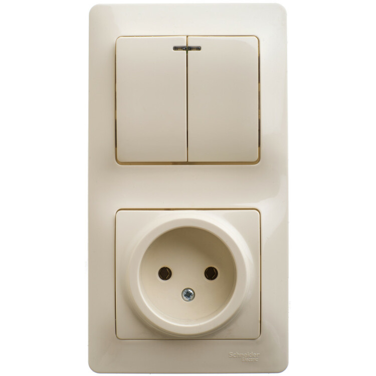 БЛОК: РОЗЕТКА + 2-кл ВЫКЛ с подсв. БЕЖ