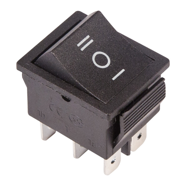 Переключатель клавишный 250В 15А (6с) ON-OFF-ON черный с нейтралью REXANT