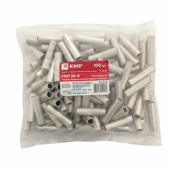 Гильза соединительная медная луженая ГМЛ 25-8 ГОСТ (2шт.) EKF PROxima