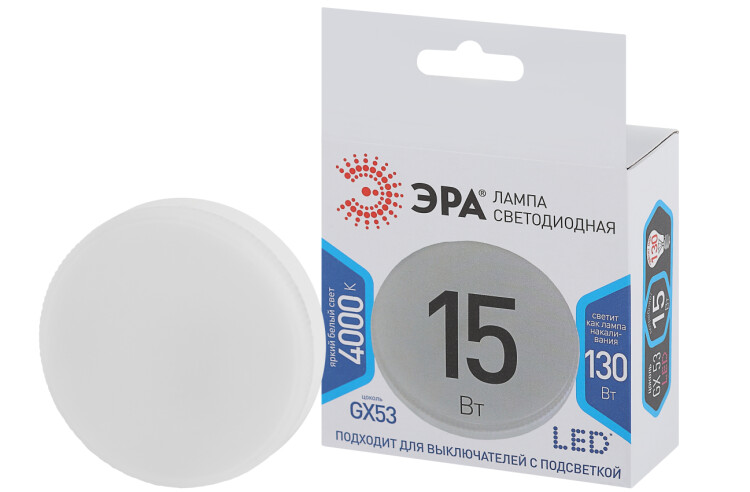 Лампочка светодиодная ЭРА STD Б0062269 GX53 15Вт таблетка нейтральный белый свет LM