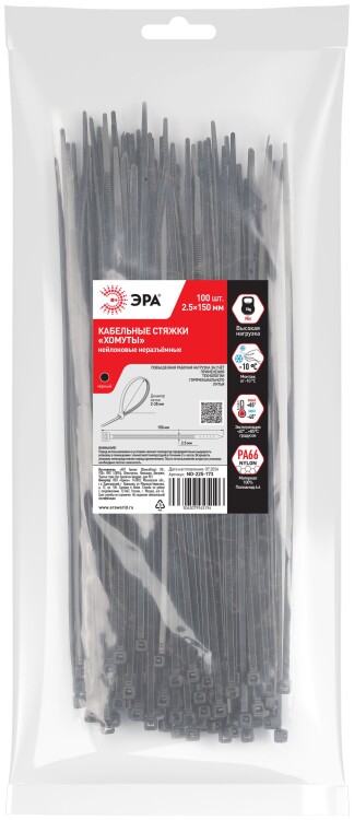 Кабельная стяжка ЭРА NO-225-173 (хомут) нейлоновая 2.5 х 150 мм чёрная (100 шт/уп)