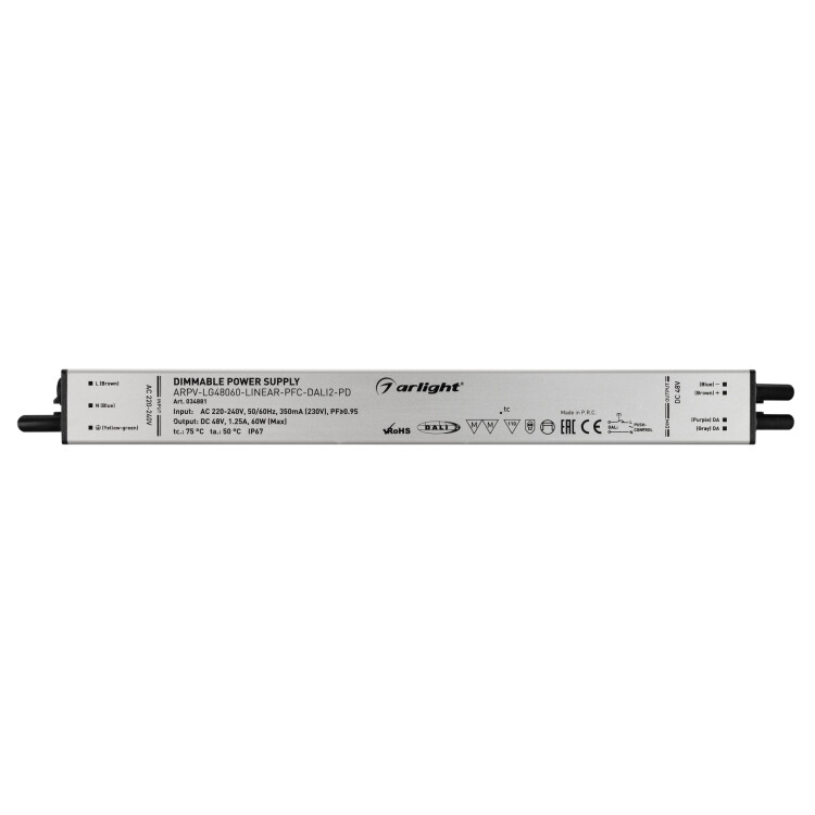 Блок питания ARPV-LG48060-LINEAR-PFC-DALI2-PD (48V, 1.25A, 60W) (Arlight, IP67 Металл, 5 лет)