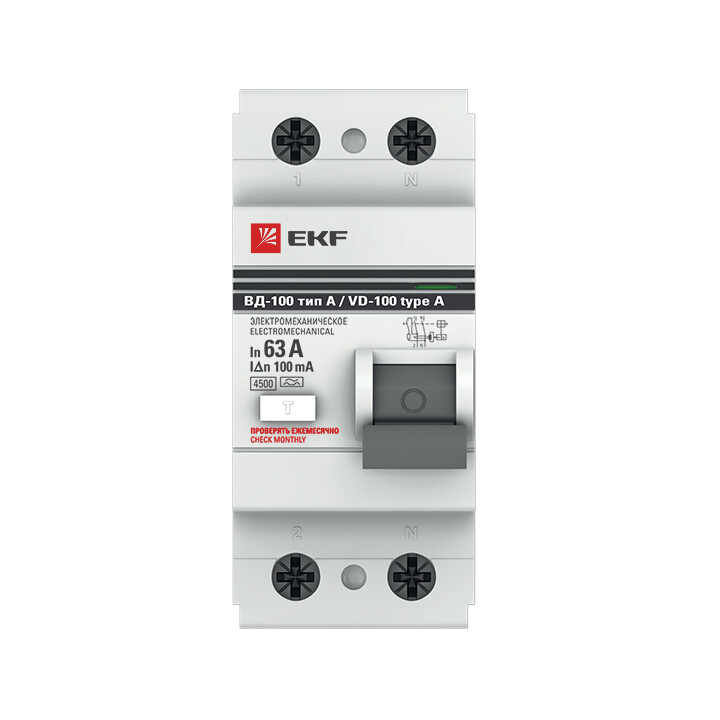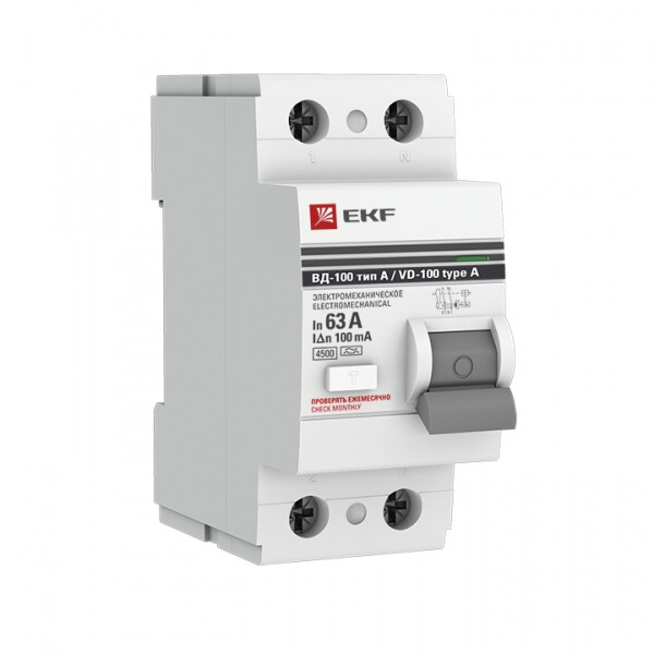 Устройство Защитного Отключения ВД-100 2P 63А/100мА (эл-мех, тип А) EKF PROxima