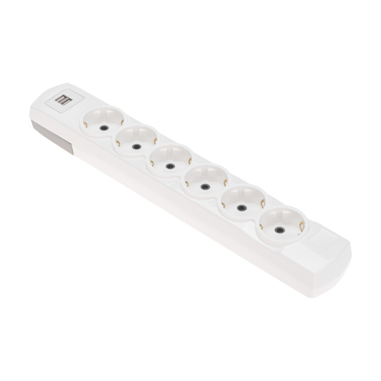 Колодка PREMIUM 6 гнезд, с/з, 2 USB, белый REXANT