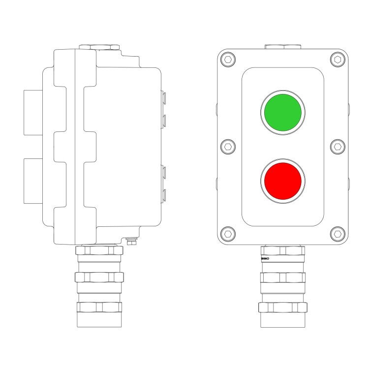 Взрывонепроницаемый пост управления из алюминия LCSD-02-B-MC-P1G(11)x1-P1R(11)x1-PCMB-KA3MHK / 1Ex d IIB T5 Gb / Ex tb IIIC T95°С Db IP66