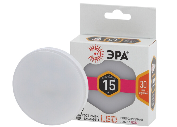 Лампочка светодиодная ЭРА Б0062266 GX53 15Вт таблетка теплый белый свет LM