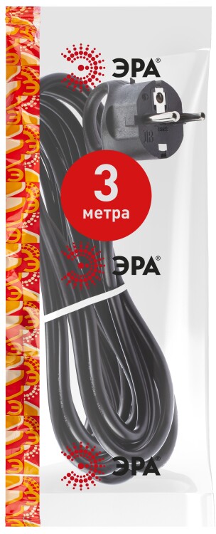 Шнур сетевой, с вилкой, ПВС 3x0,75мм?, IP20, длина 3 м, ПВХ, чёрный, UX-3x0,75-3m-B