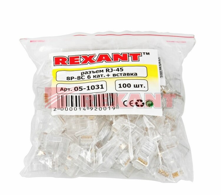 Разъем RJ-45(8P8C) под витую пару, UTP, CAT 6, с вставкой REXANT