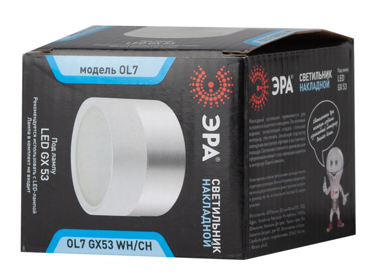 OL7 GX53 WH/CH Подсветка ЭРА Накладной под лампу Gx53, алюминий, цвет белый+хром (40/1200)
