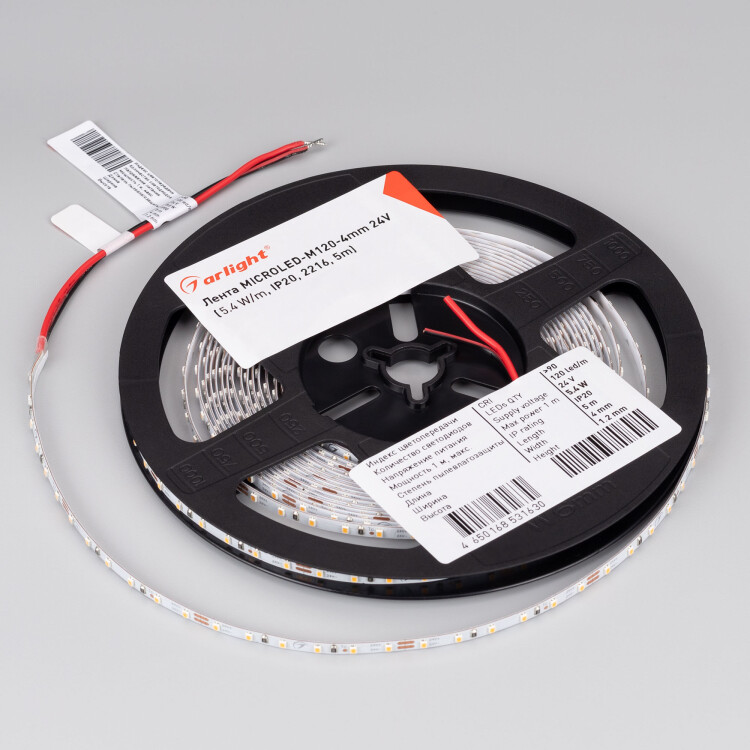 Светодиодная лента MICROLED-M120-4mm 24V Warm2700 (5.4 W/m, IP20, 2216, 5m) (ARL, узкая)