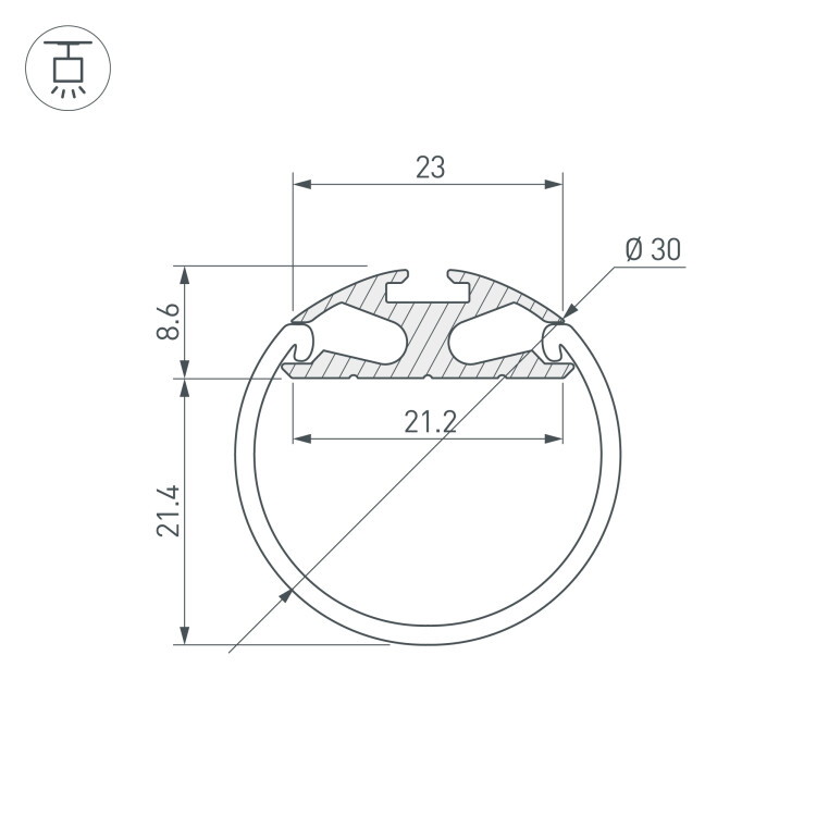 Алюминиевый Профиль ROUND-D30-2000 ANOD