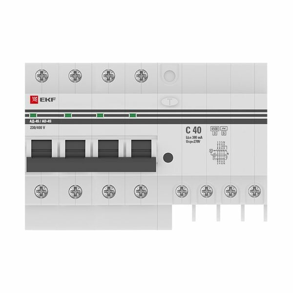 Дифференциальный автомат АД-4 S 40А/300мА (хар. C, AC, электронный) 4,5кА EKF PROxima