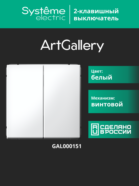 Выключатель 2 клавишный 10А белый ArtGallery
