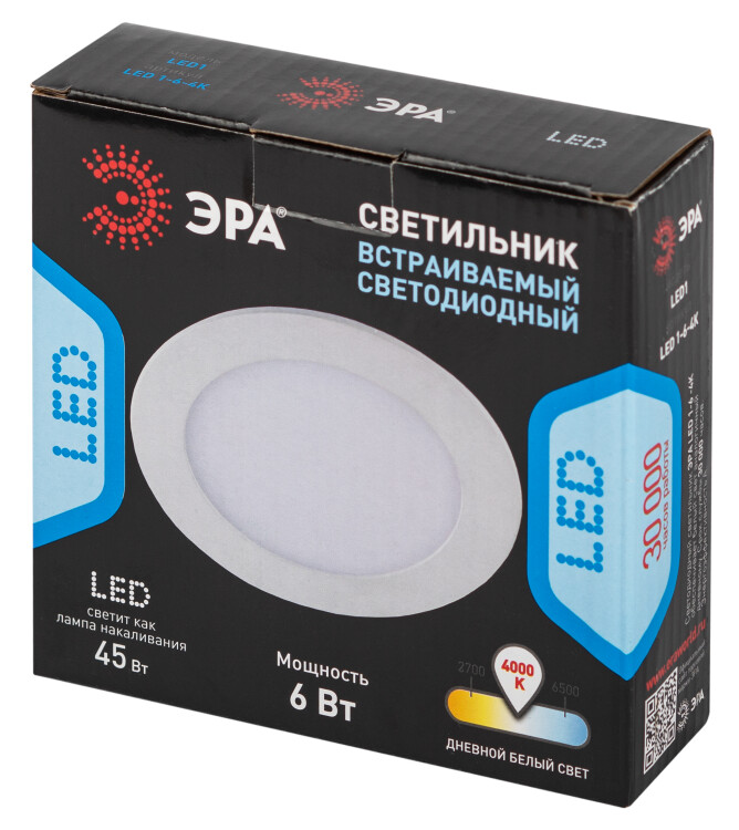 LED 1-6-4K/1 Светильник ЭРА LED 1-6-4K/1 Светильник ЭРА светодиодный круглый LED 6W 220V 4000K (40/