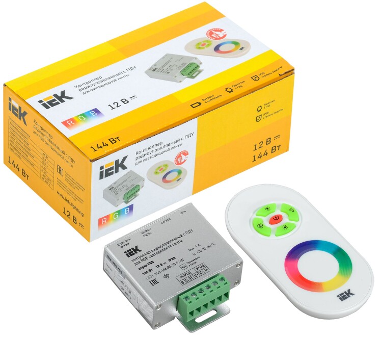 Контроллер с ПДУ радио RGB 3 канала 12В 4А 144Вт белый IEK