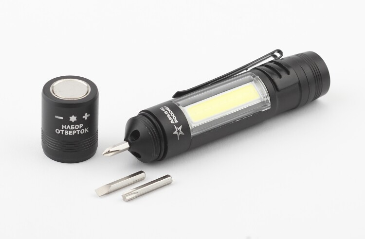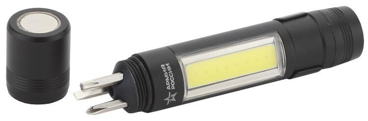 Фонарь универсальный 1,5Вт, алюм., отвертки, магнит, клипса, 1ХААА "САПЕР" MB-702 "Армия России"