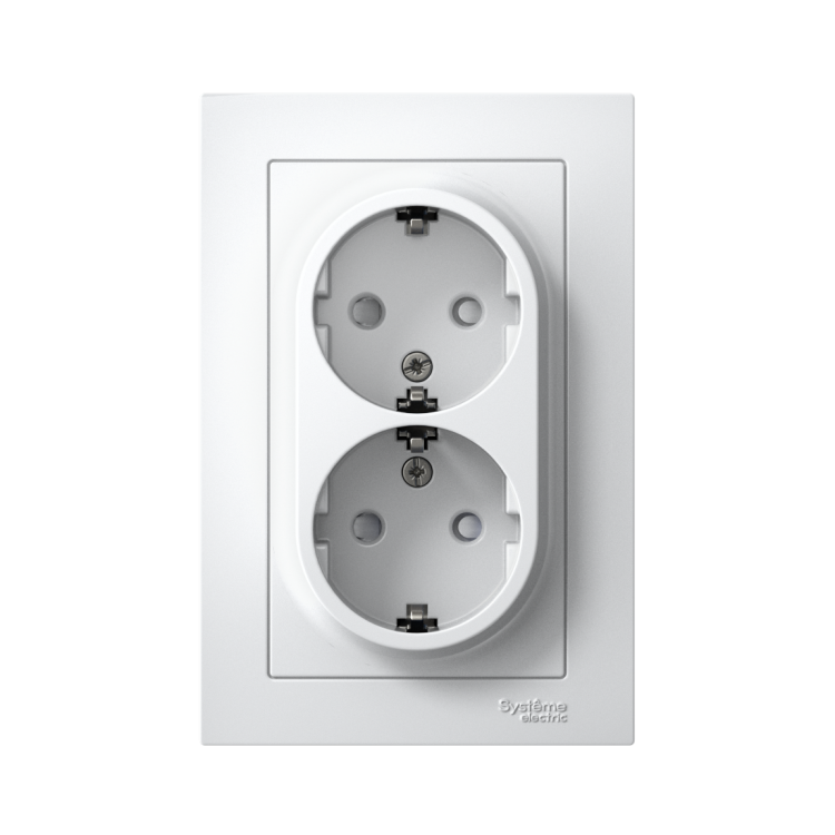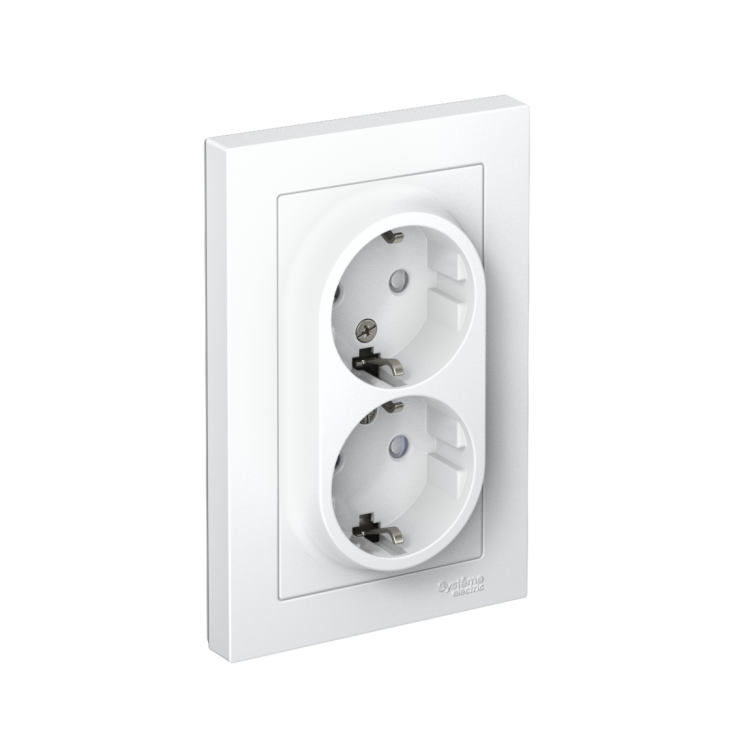 Розетка 2х2P+E со шторками в сборе 16А белый AtlasDesign