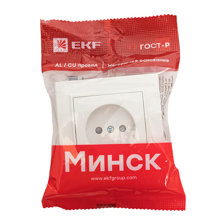 Розетка 2P со шторками 10А СП белая Минск EKF Basic
