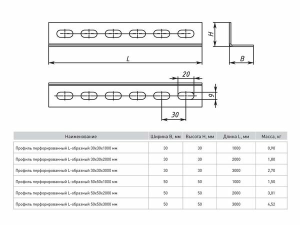 L-профиль 1000x30x30 сталь серый перфорация: с 2-х сторон EKF