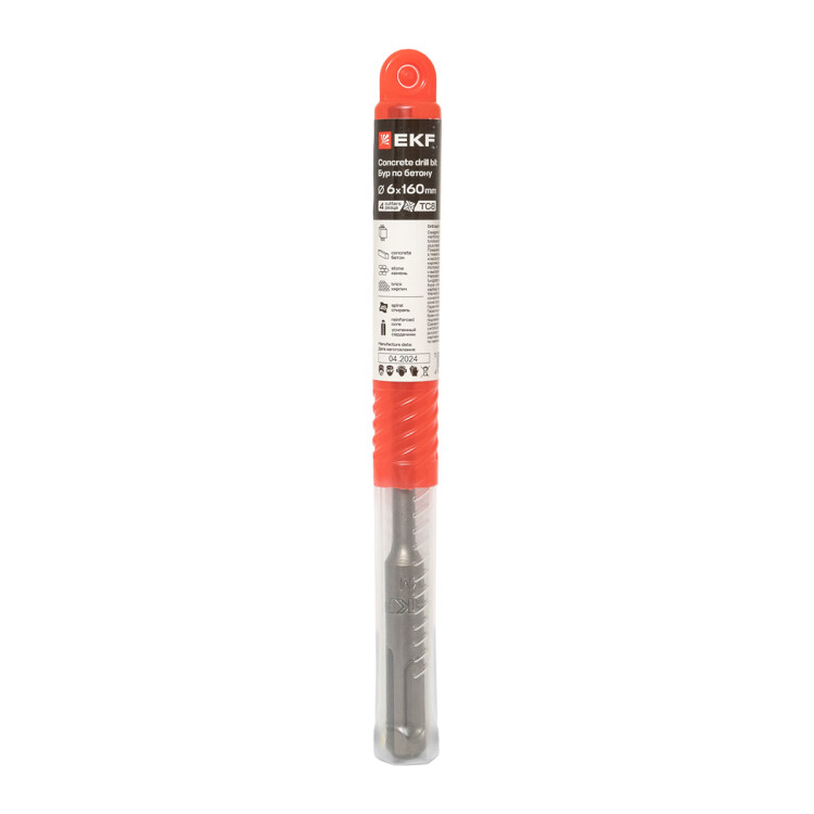 Бур по бетону SDS-plus 6х160 мм (4 резца) EKF Professional