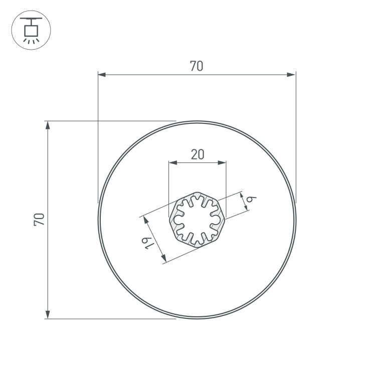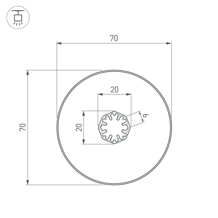 Профиль SL-ROUND-D70-360deg-2000 ANOD (Arlight, Алюминий)