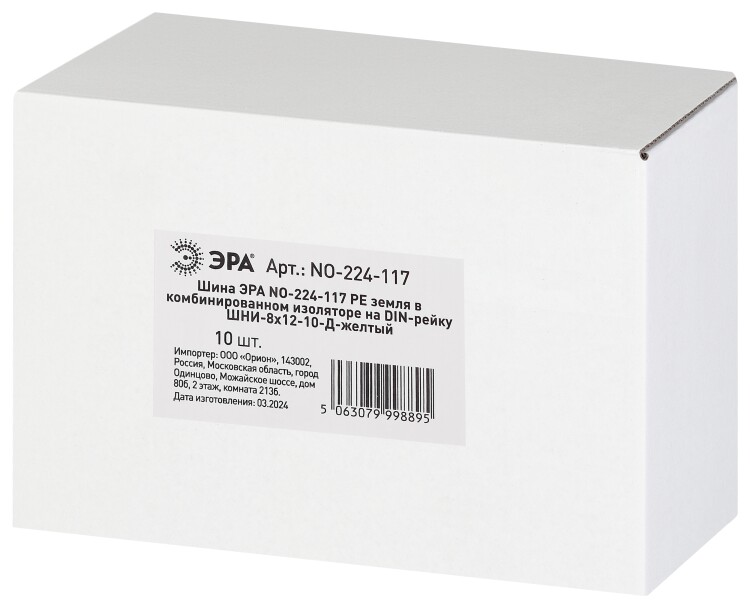 Шина ЭРА NO-224-117 PE земля в комбинированном изоляторе на DIN-рейку ШНИ-8х12-10-Д-желтый